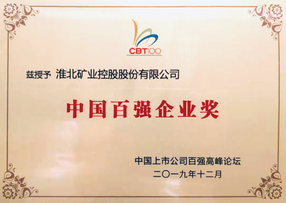 淮北礦業獲評“2019年中國上市公司百強企業”榮譽稱號