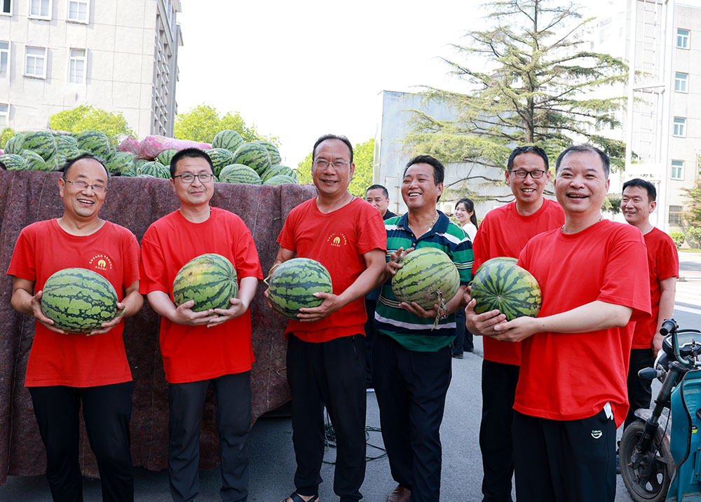 “這天才剛熱起來,咱就能吃到可口西瓜,真是太好了……”,6月14日上午,一輛滿載西瓜的貨車停在朱仙莊礦采掘樓門前,職工們抱著一個個綠油油、圓滾滾的大西瓜,臉上都樂開了花。